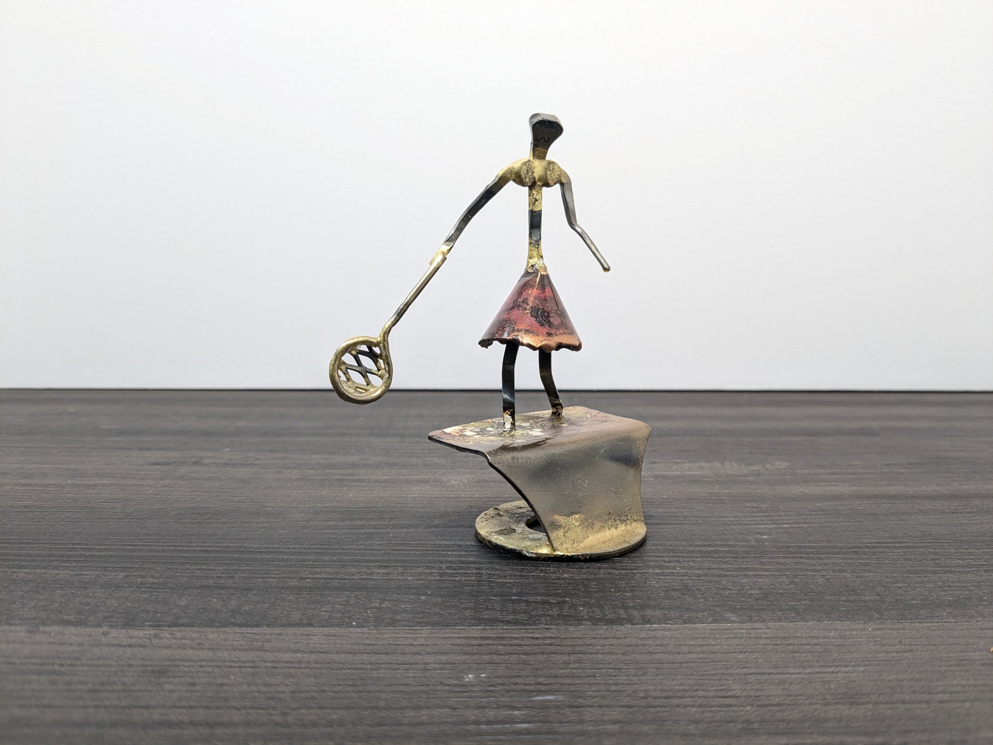 Brutalist Brass, Metal and Enamel Tennis Sculpture | KUZA Original Designs