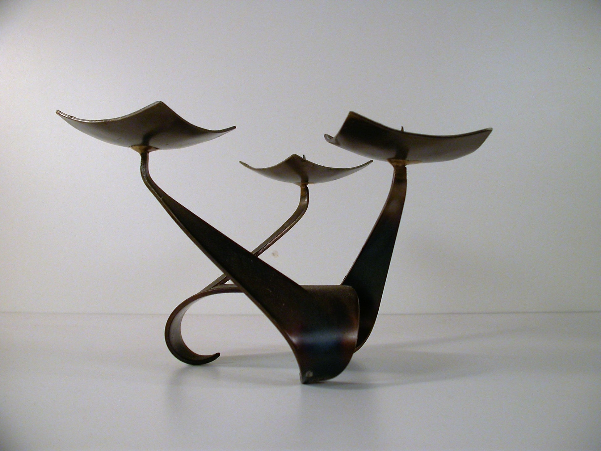 Fer Art vintage candle stand, hand made sculptured steel brutalist design, very solid and stable.