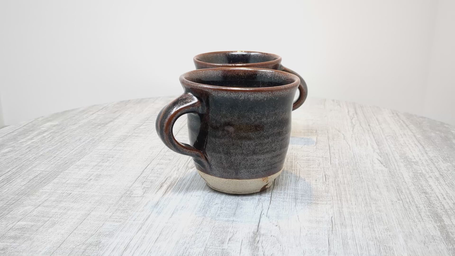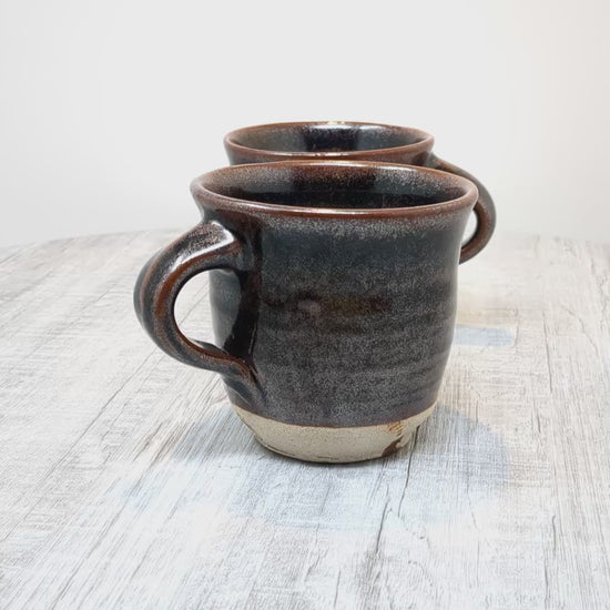 Heinz Laffin Mugs | Pair of Stoneware Mugs | Tenmoku Glaze