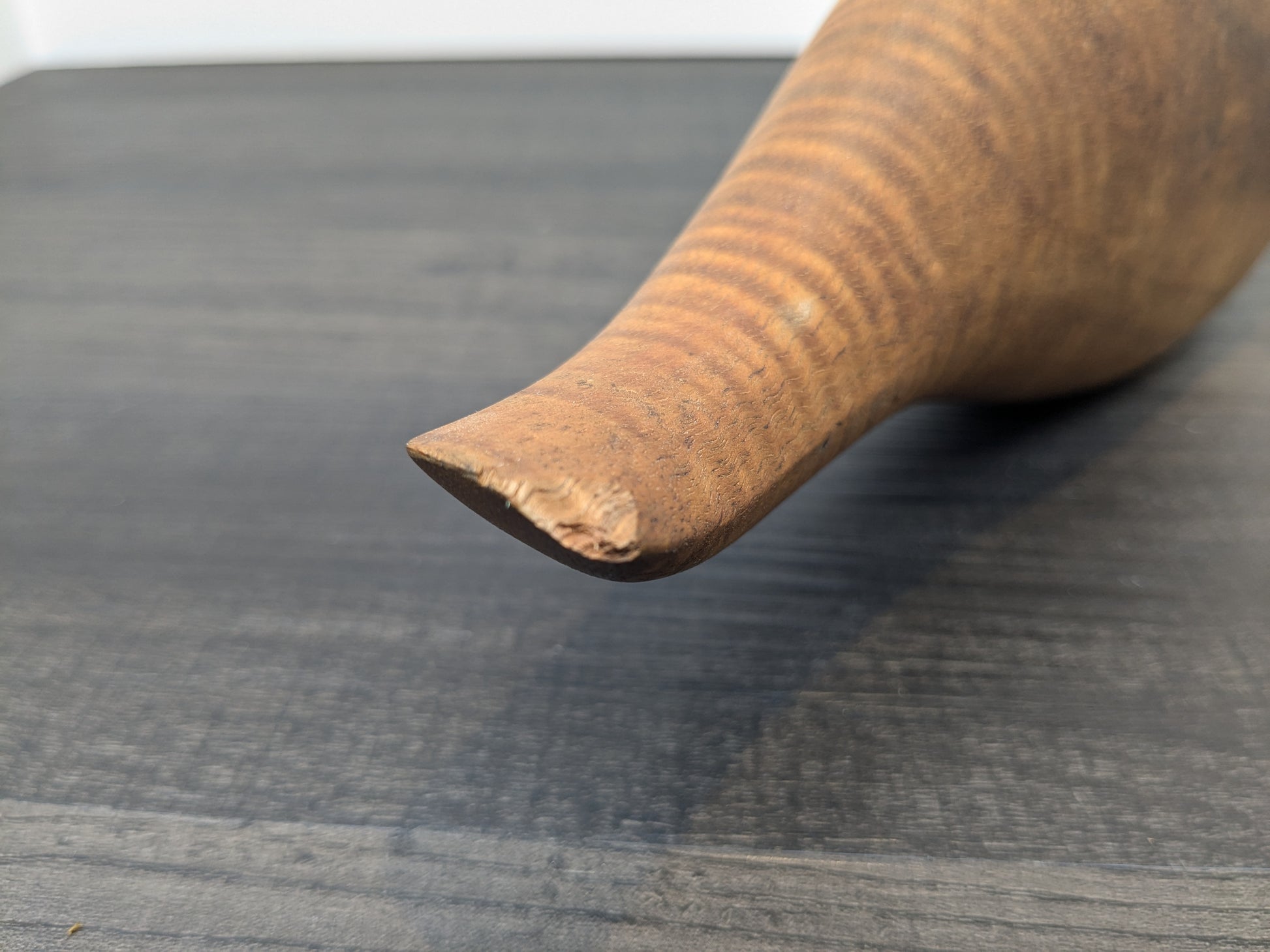 Sculpture has one wood nick on back end (see photos), visible from certain angles but does not detract from the overall aesthetic of this piece.