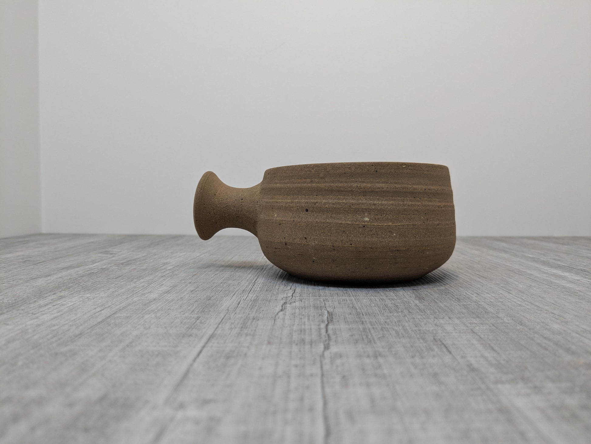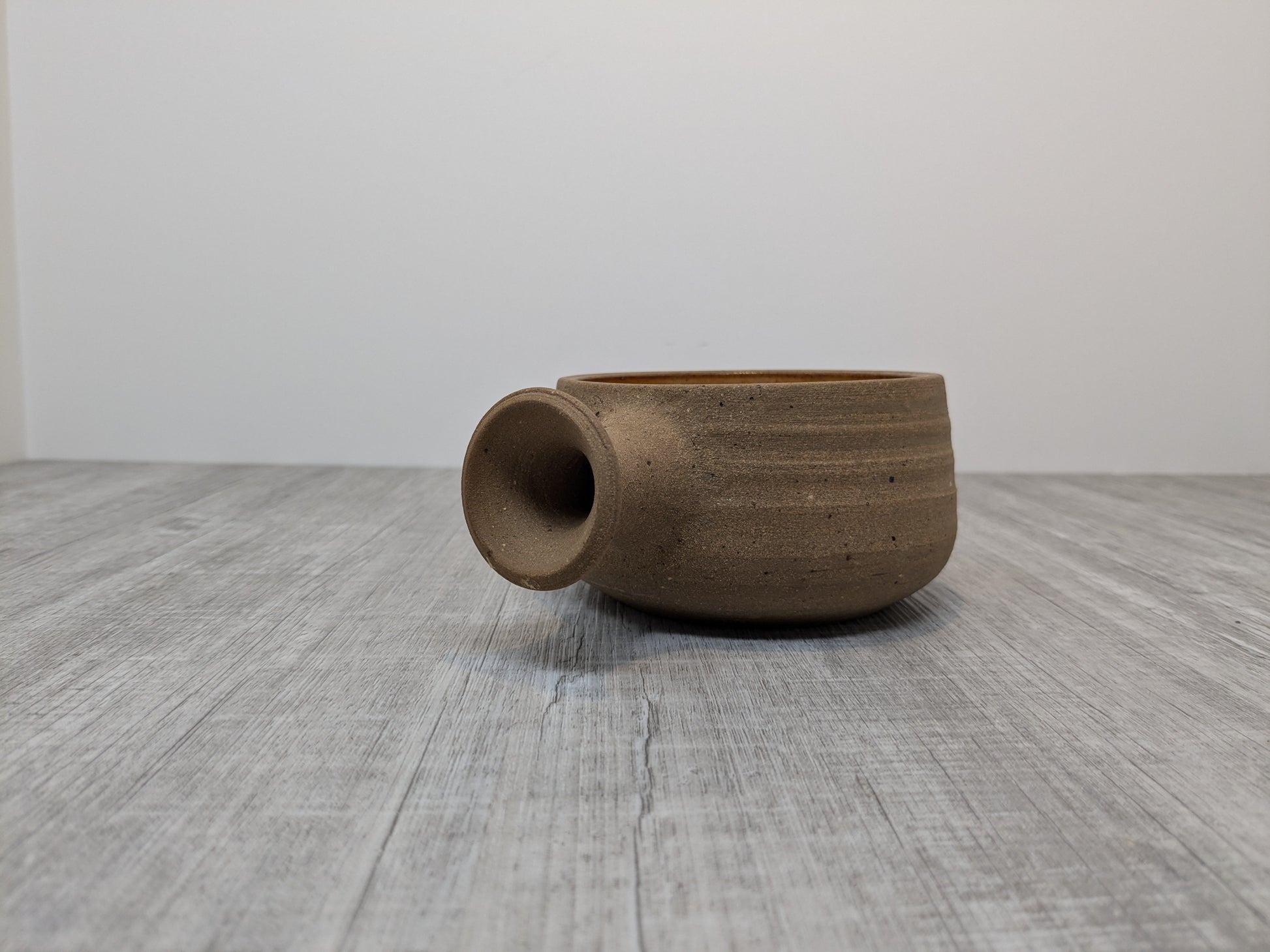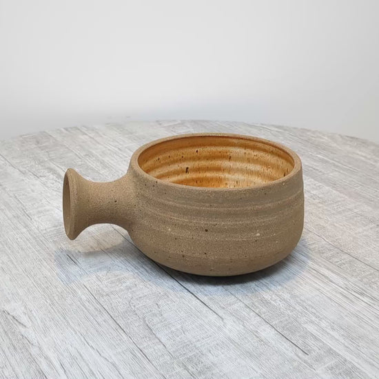 Meg Buckley (1931-2020) stoneware soup bowl, beautiful functional pottery. Unglazed stoneware exterior with oatmeal rust glaze interior.