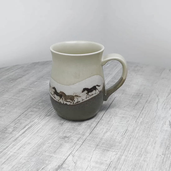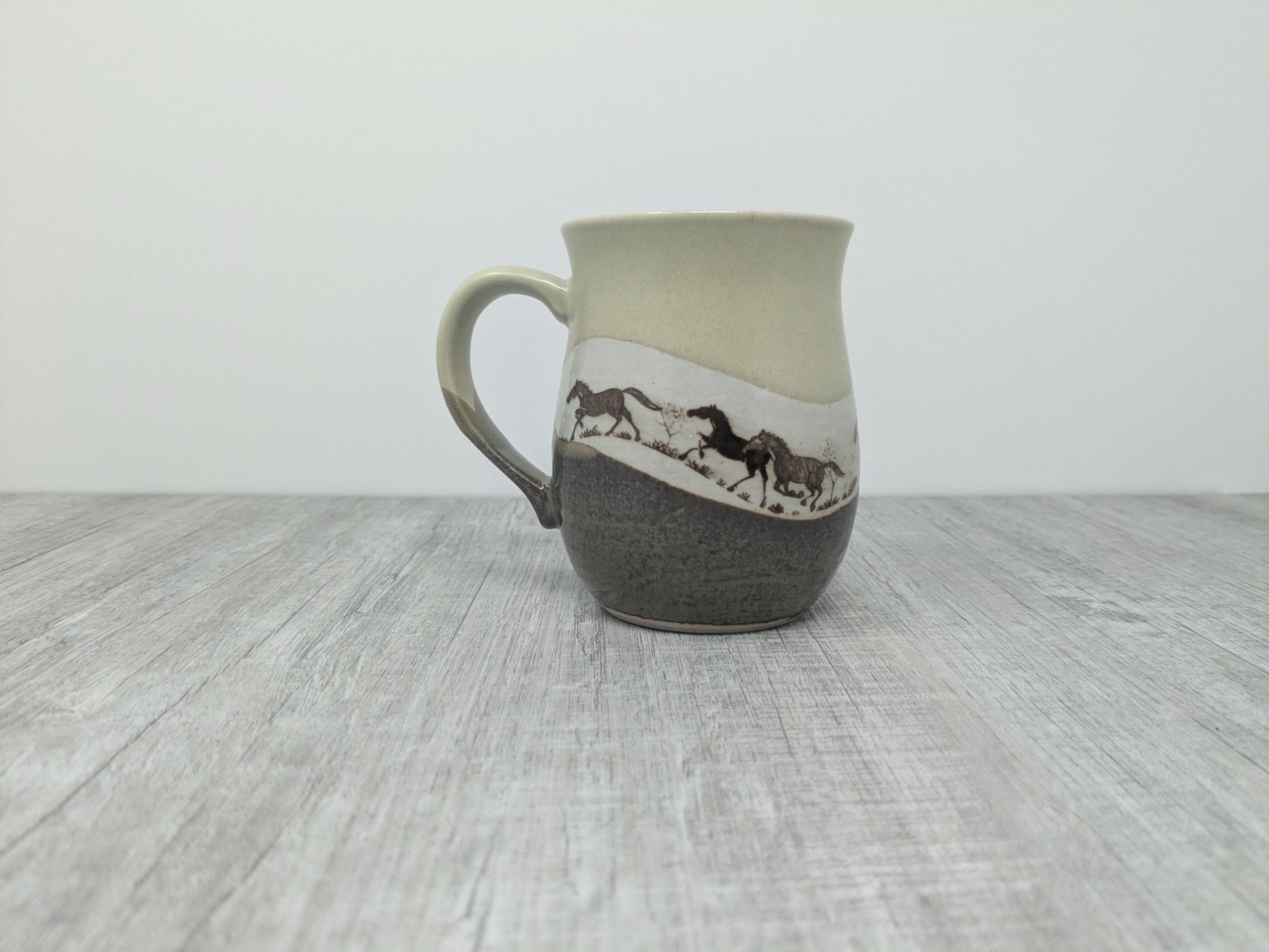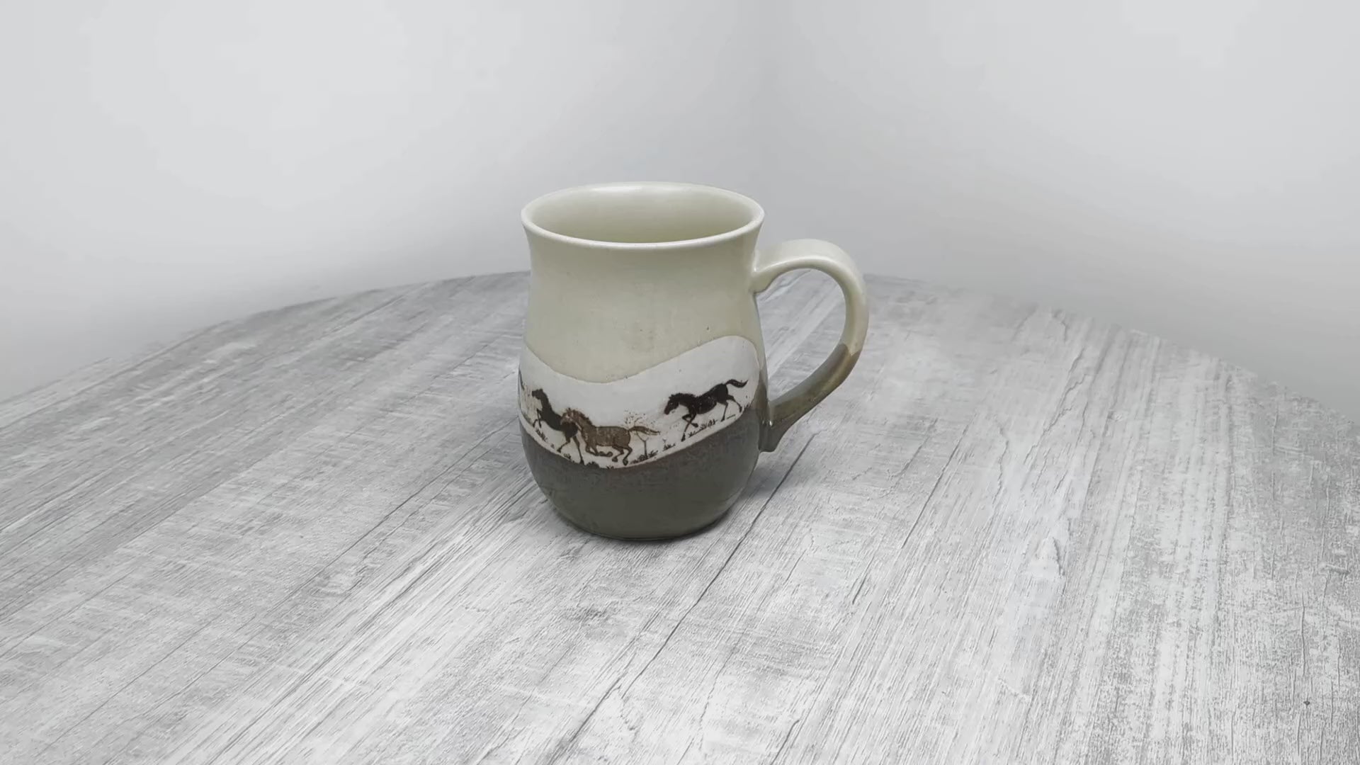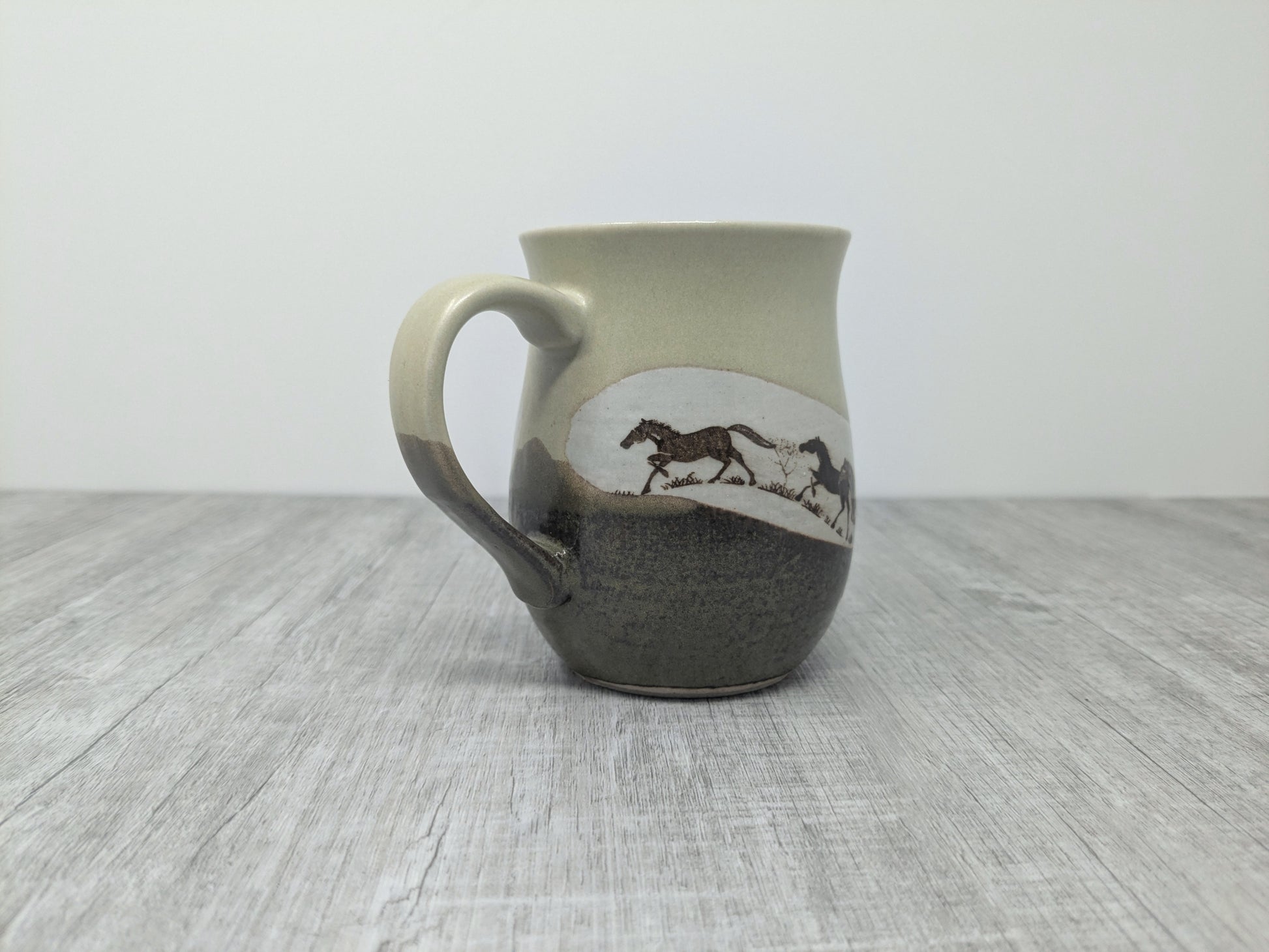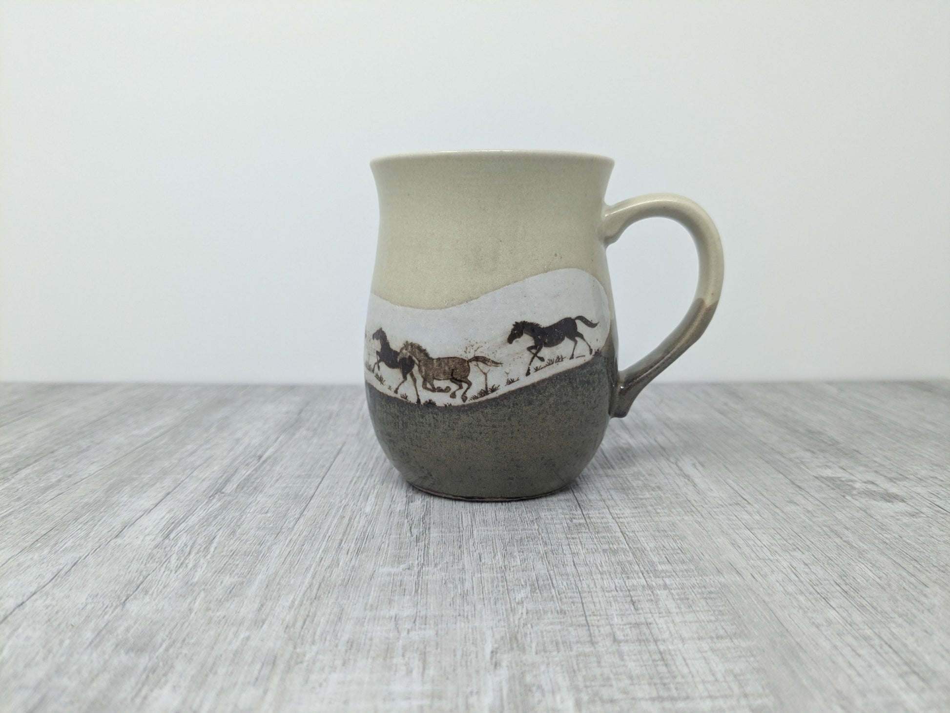 Vintage OTOGIRI Horse / Wild Stallions pottery mug made in Japan in the 1980's .High quality stoneware with a beautifull portrayal of galloping horses. Mug is not marked or signed but it is in the distinctive Otagiri style from that time.