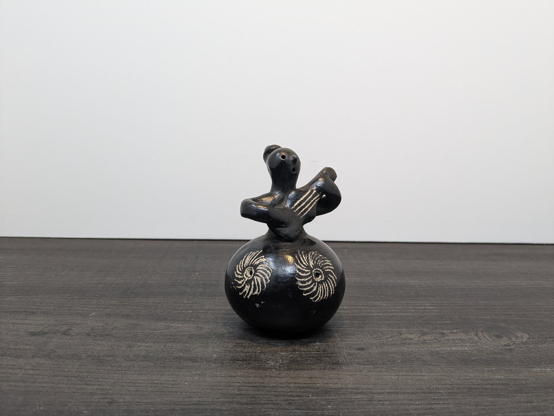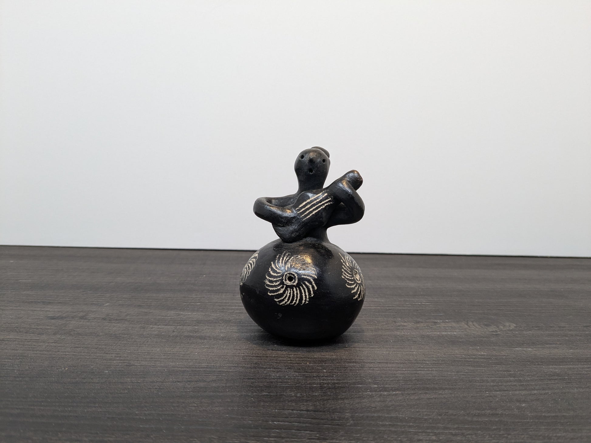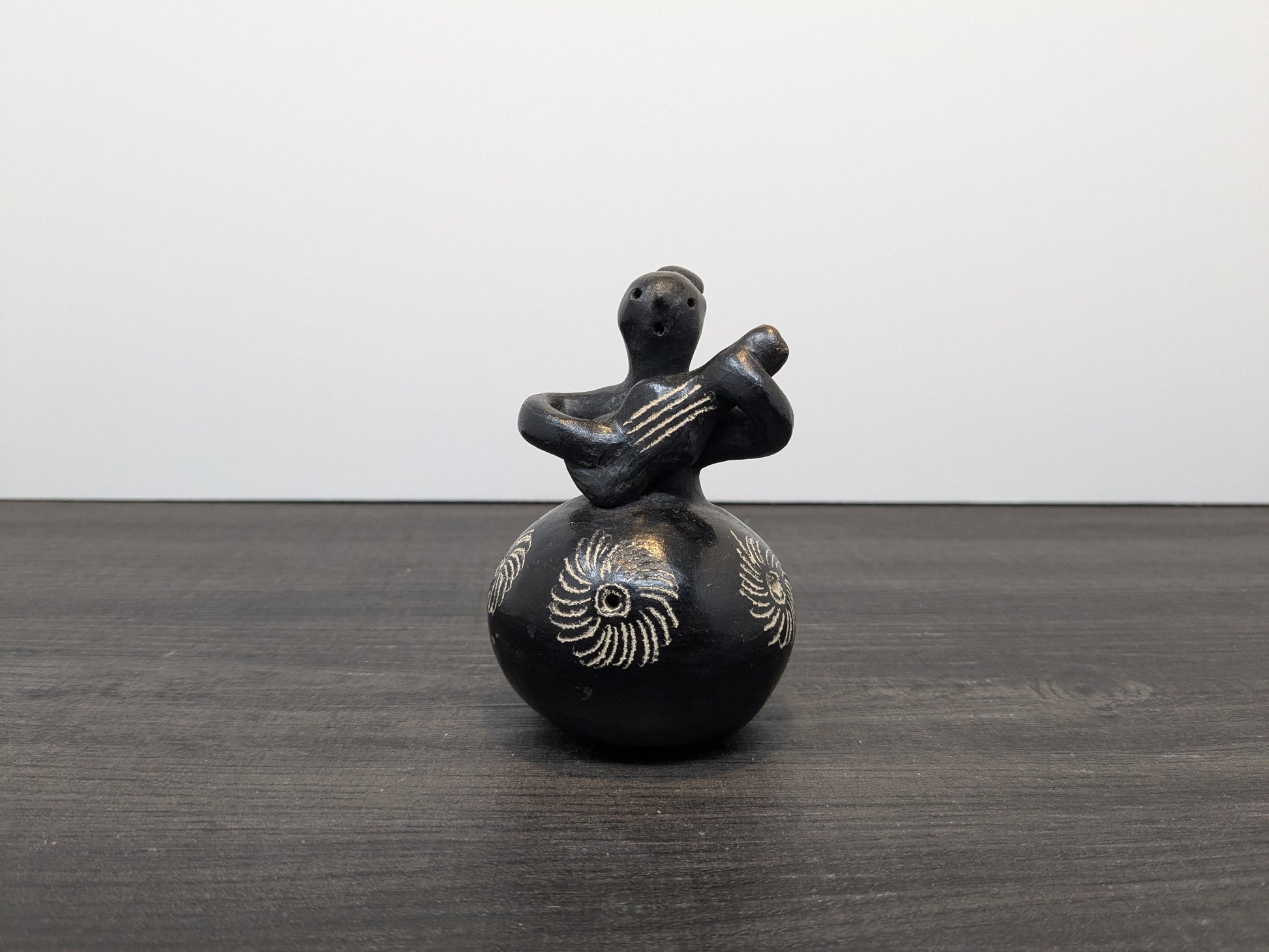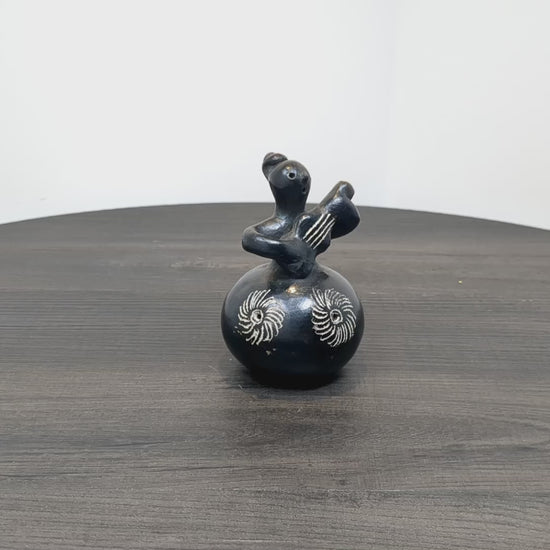 Quinchamali Pottery Chile| 20th Century Mestizo Traditional Chilean Decorative Pottery | Barro Negro Guitar Player