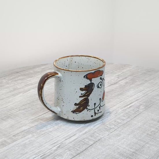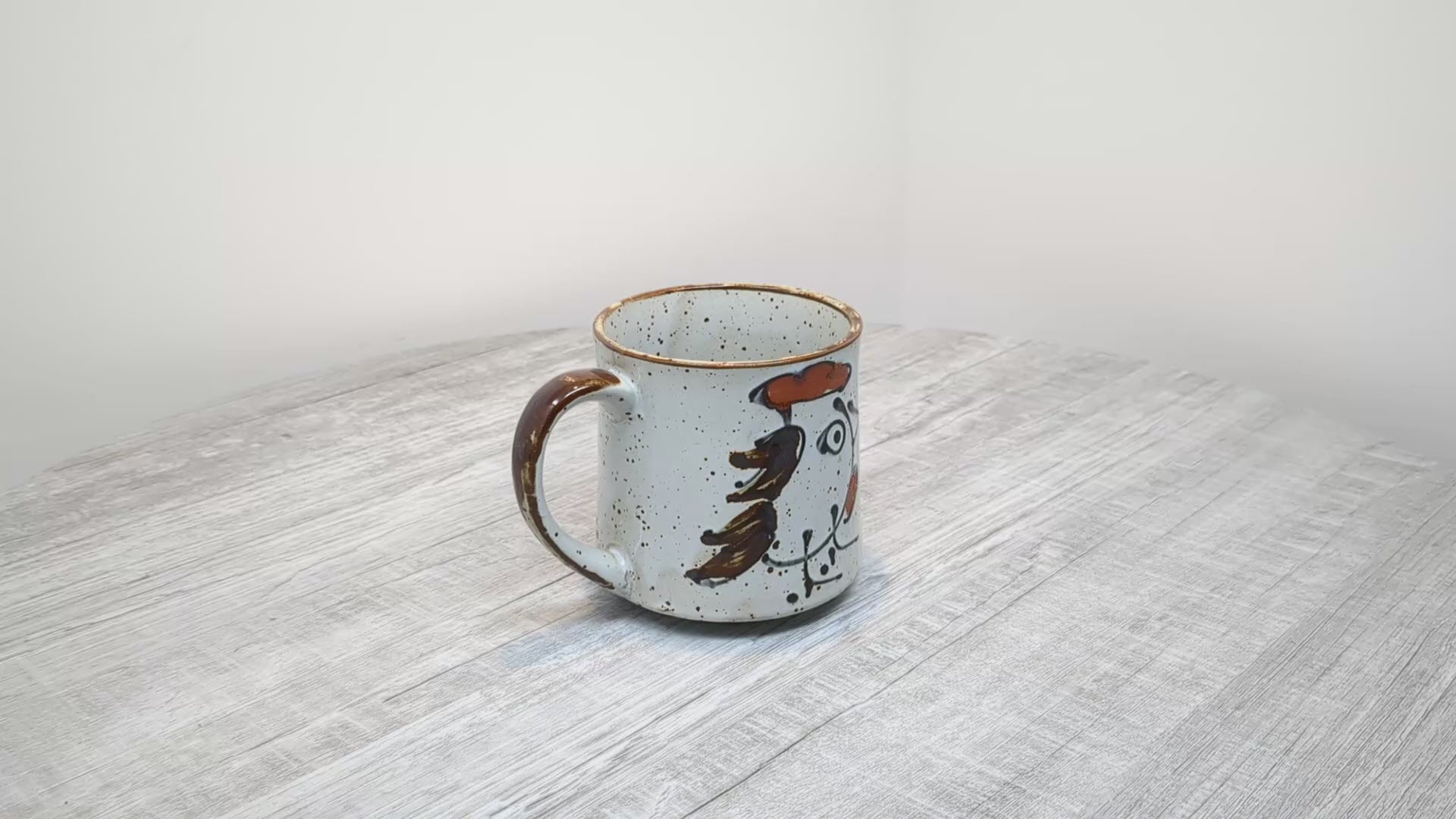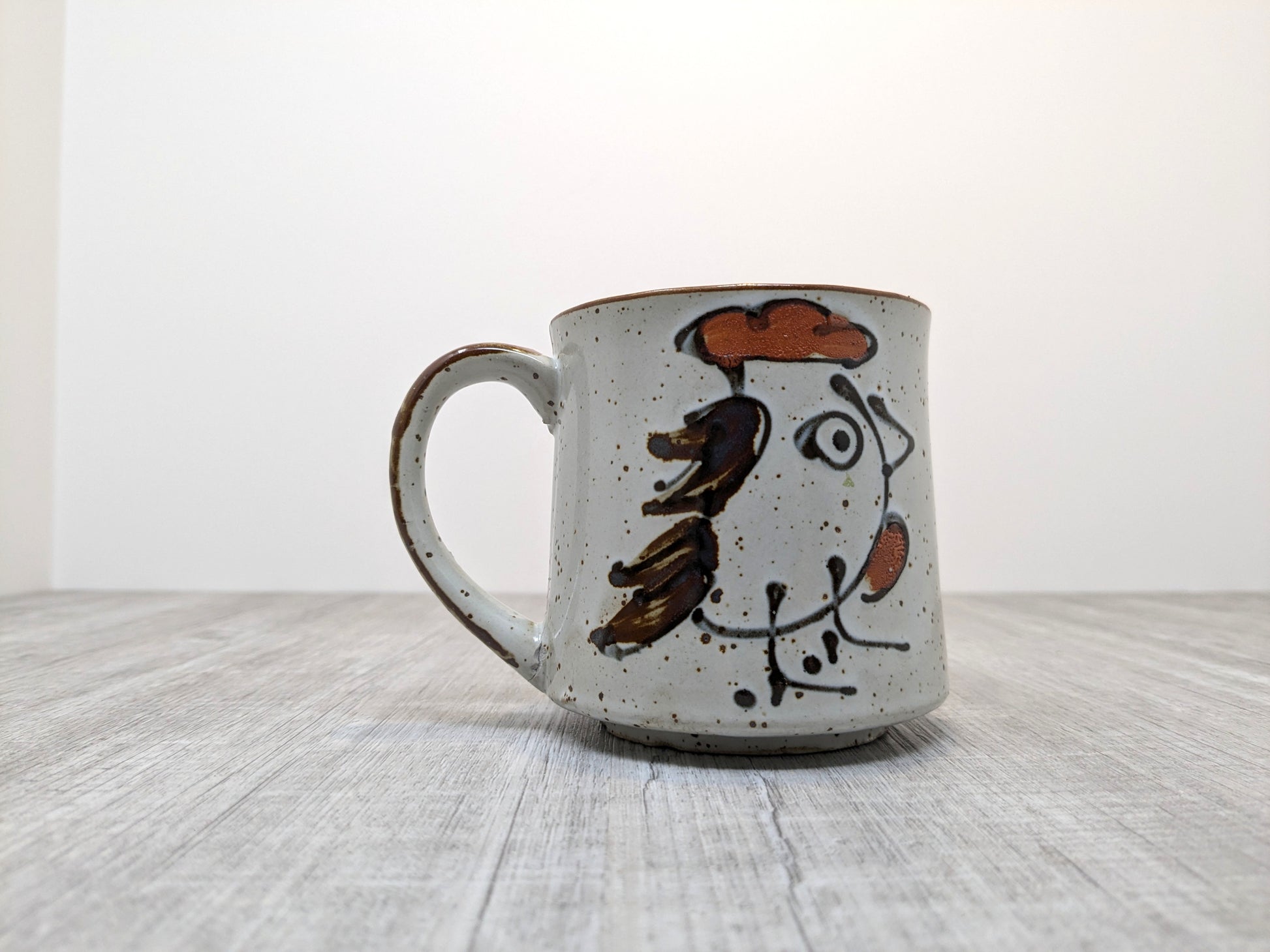 Vintage Ceramic Mug | Mid Century Stoneware Mug with Stylized Rooster Graphic