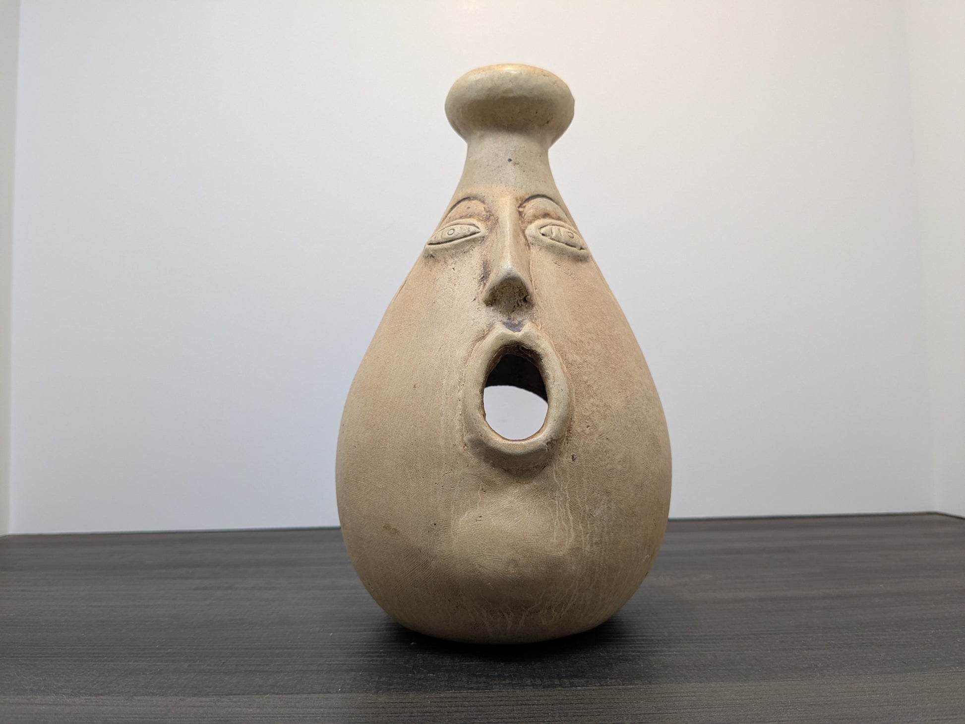 Vintage Mexican Folk Art Terracotta face candle / incense holder